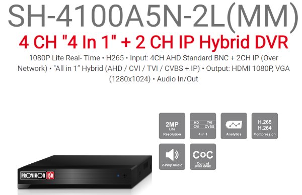 מכשיר הקלטה Provision AHD SH-4100A5N-2L 2MP LITE Audio In/Out