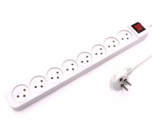 מפצל חשמל ל-8 שקעים עם כבל מאריך באורך מטר ומפסק